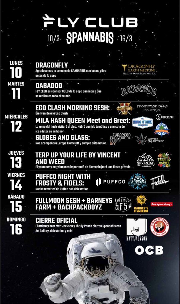 Tropical Glass y Fly Club Barcelona hacen una colaboración en los eventos de la semana de Spannabis 2025, donde contaran con eventos como catas, meet & greet y exposiciones de marcas como: Mila Hash Queen, Og Crush, Flame Off, Puffco, Frosty, Fullmoon Sesh, Vincentandweed, Fidels, Backpack Boys, Matt Jackson, Thruly Panda entre otros.